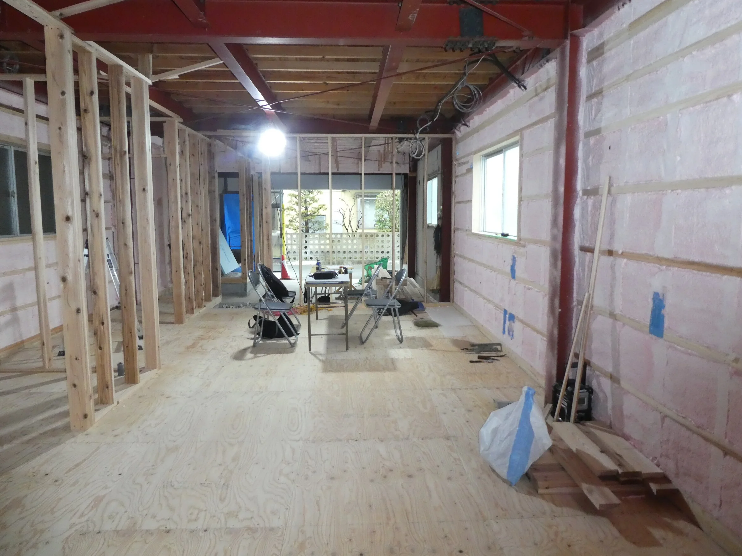 このまま、天井を貼らずに鉄骨を黒く色付けしても